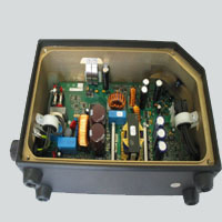 - Einbau in extrem robustes, staub- und wasserdichtes IP67-Aluminiumgussgehäuse mit Griff und Füßen. So kann das Netzteil in der Hand getragen werden.